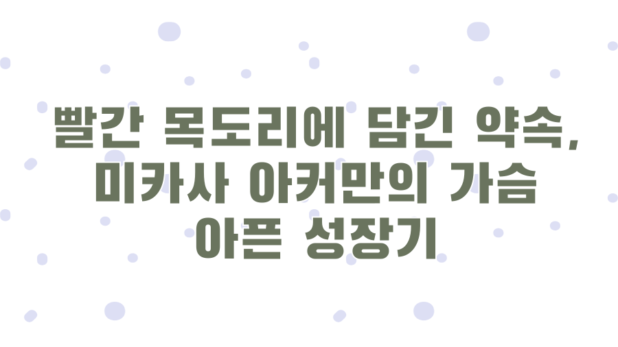 이 사건 이후, 갈 곳을 잃고 낙담한 미카사에게 에렌은 자신이 두르고 있던 빨간색 목도리를 건네주며 따뜻한 위로를 전합니다. 이 목도리는 단순히 추위를 막아주는 것을 넘어, 미카사에게 에렌의 사랑과 보호, 그리고 함께할 미래에 대한 약속을 상징하게 됩니다.